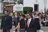 Owner John Henry and his wife, Linda Pizzuti, and Red Sox President and CEO Larry Lucchino came to the funeral in buses that arrived from Fenway.