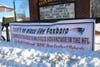 The banners are part of a rally organized by resident Lynda Walsh and the Foxborough Jaycees planned for Saturday. Residents are encouraged to stop by the Booth Playground at 10 a.m. to make a sign for a march to the Common for a rally and sign contest. The winner of the contest will be the owner of an autographed Rob Gronkowski jersey.