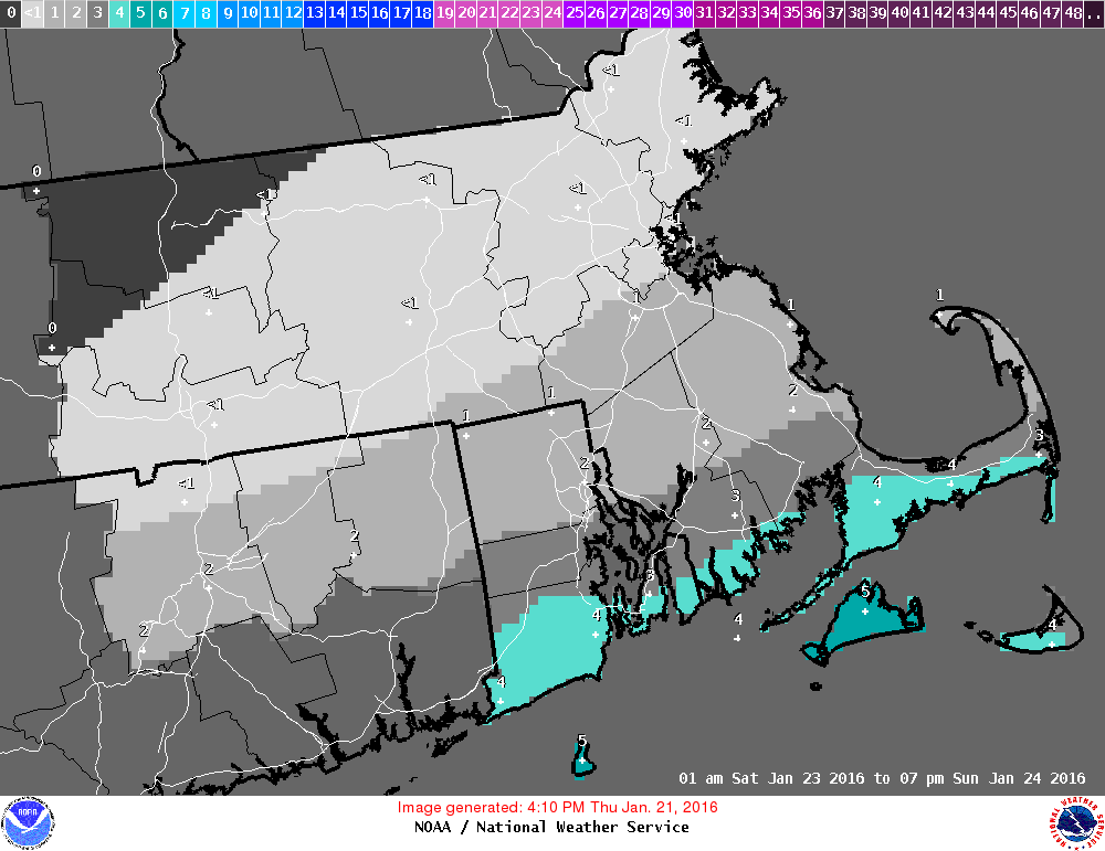 The latest forecast from the National Weather Service indicates that the major winter storm that will impact the east coast and mid-Atlantic will fizzle out before it makes it to much of Massachusetts.