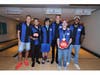 (Image 2) New England Revolution defender Antonio Delamea, midfielder Kelyn Rowe, Special Olympics Massachusetts athlete James Keith from North Andover, goalkeeper Cody Cropper, Special Olympics Massachusetts athlete Jeremy Smith from Stoughton and defender Andrew Farrell after their bowling session in support of Special Olympics Massachusetts at Patriots Place during “Bowl for a Goal” on July 26.