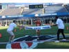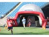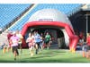 Both races ended with a sprint through an inflatable Patriots helmet and finish at midfield.