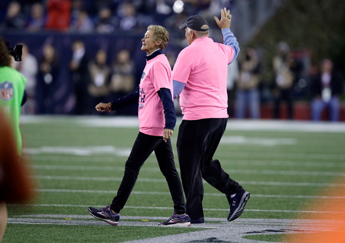 Galynn Brady took part in a pregame ceremony for the NFL's Crucial Catch cancer awareness campaign.