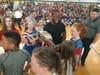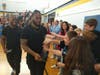Students at all the schools greeted the players with excitement but none were more enthused than the Ahern Middle School, where students reaching for the trophy showed shades of the fandom usually seen at games rather than a school assembly.