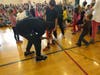 FOXBOROUGH, MA - Students in all five Foxborough schools thought they were going to an assembly on perseverance Wednesday. Indeed that was the topic, but what they didn’t expect was who the guest speakers were going to be. Once “Crazy Train” hit, many students started to catch on that some employees from One Patriot Place were nearby.