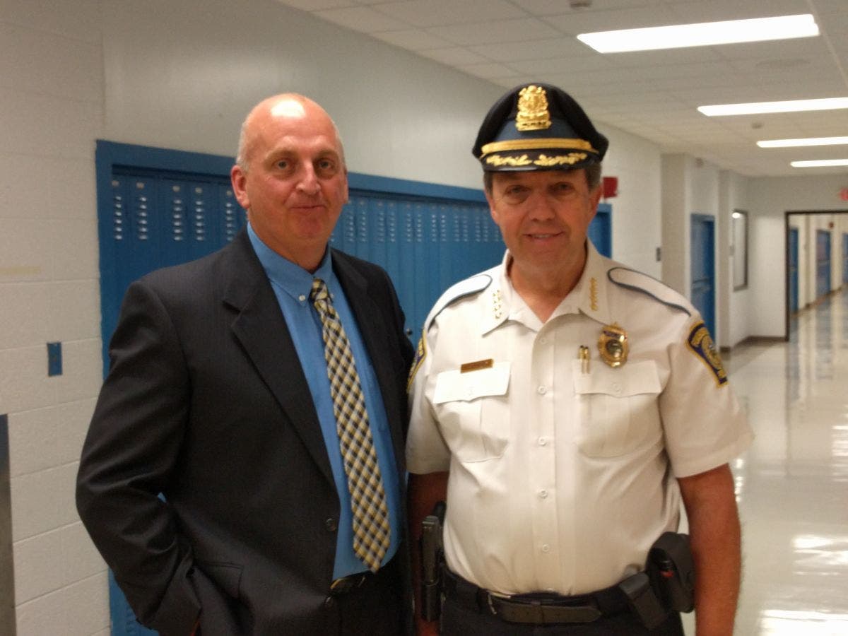 Photo: Incoming Police Chief William Baker with outgoing Police Chief Ed O'Leary. Credit: Dan Libon