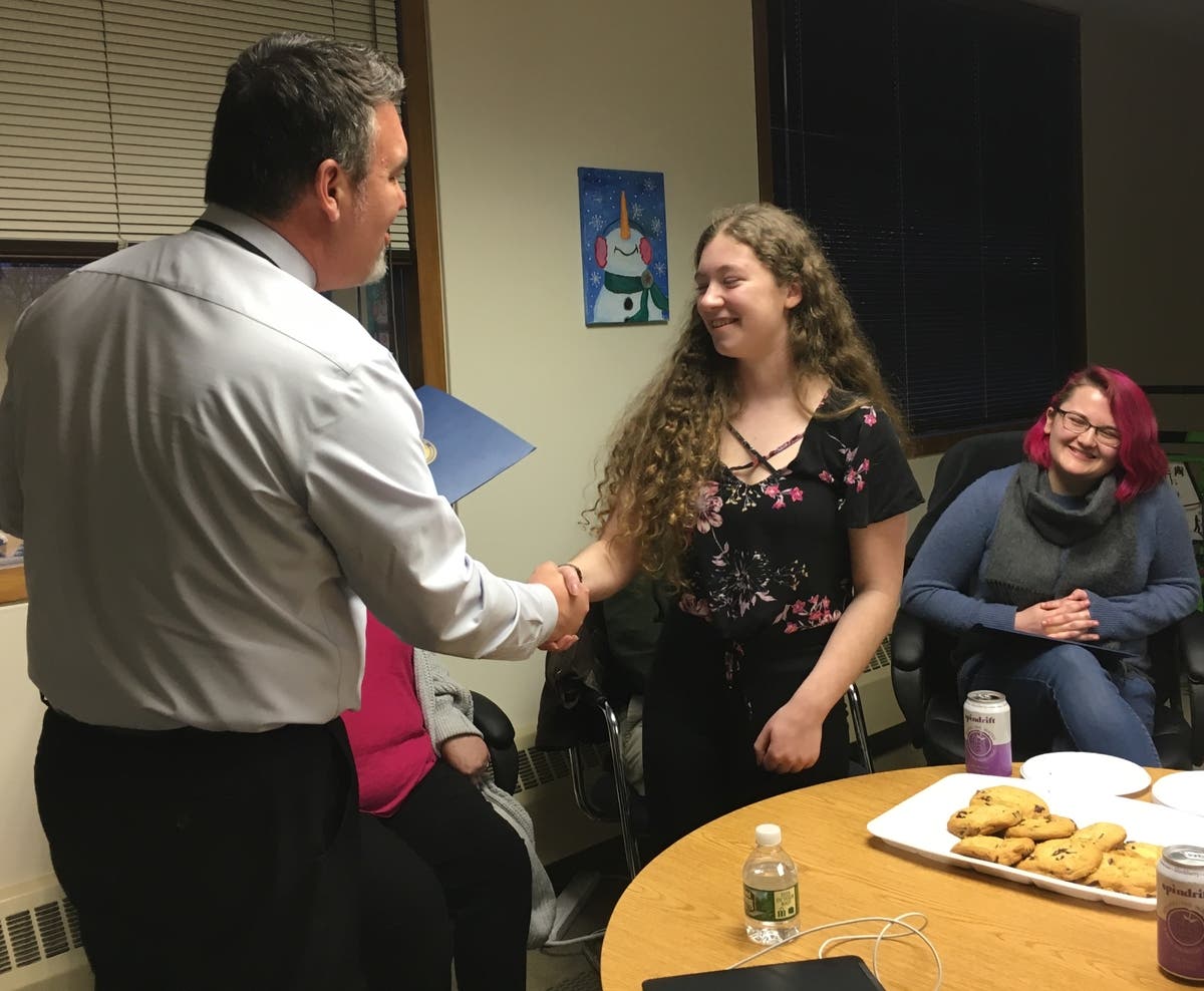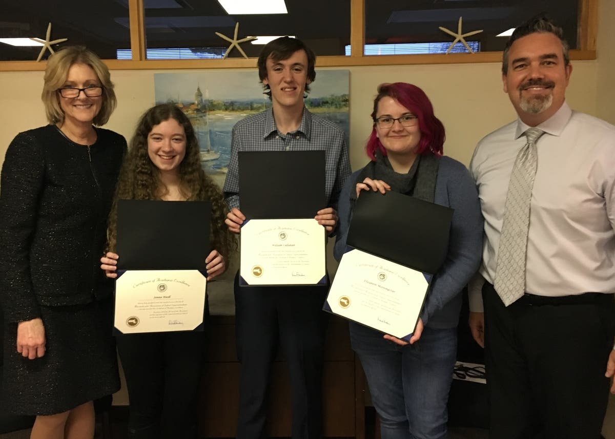 Usually only one student is selected but this year Superintendent Tremblay honored three students: William Callahan, Elizabeth Morningstar and Jenna Riedl.