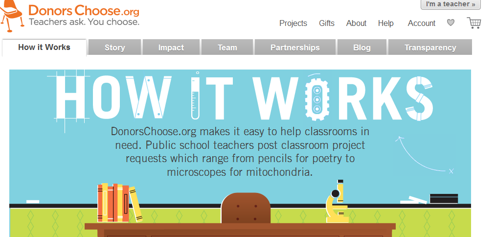 Donors Choose was created in 2000 by a social studies public school teacher in the Bronx NY. The site is specifically for public school teachers.