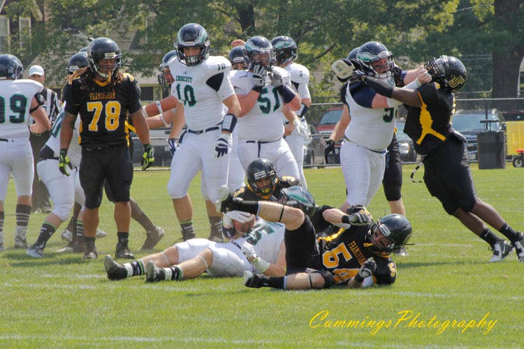 Framingham State forced five turnovers in the game, four interceptions and one fumble, which they converted into a pair of scores. Mangano had a pair of interceptions and three tackles, while junior Tyllor McDonald and sophomore Jaquan Harris each had picks in the waning minutes of the game to help secure the victory.