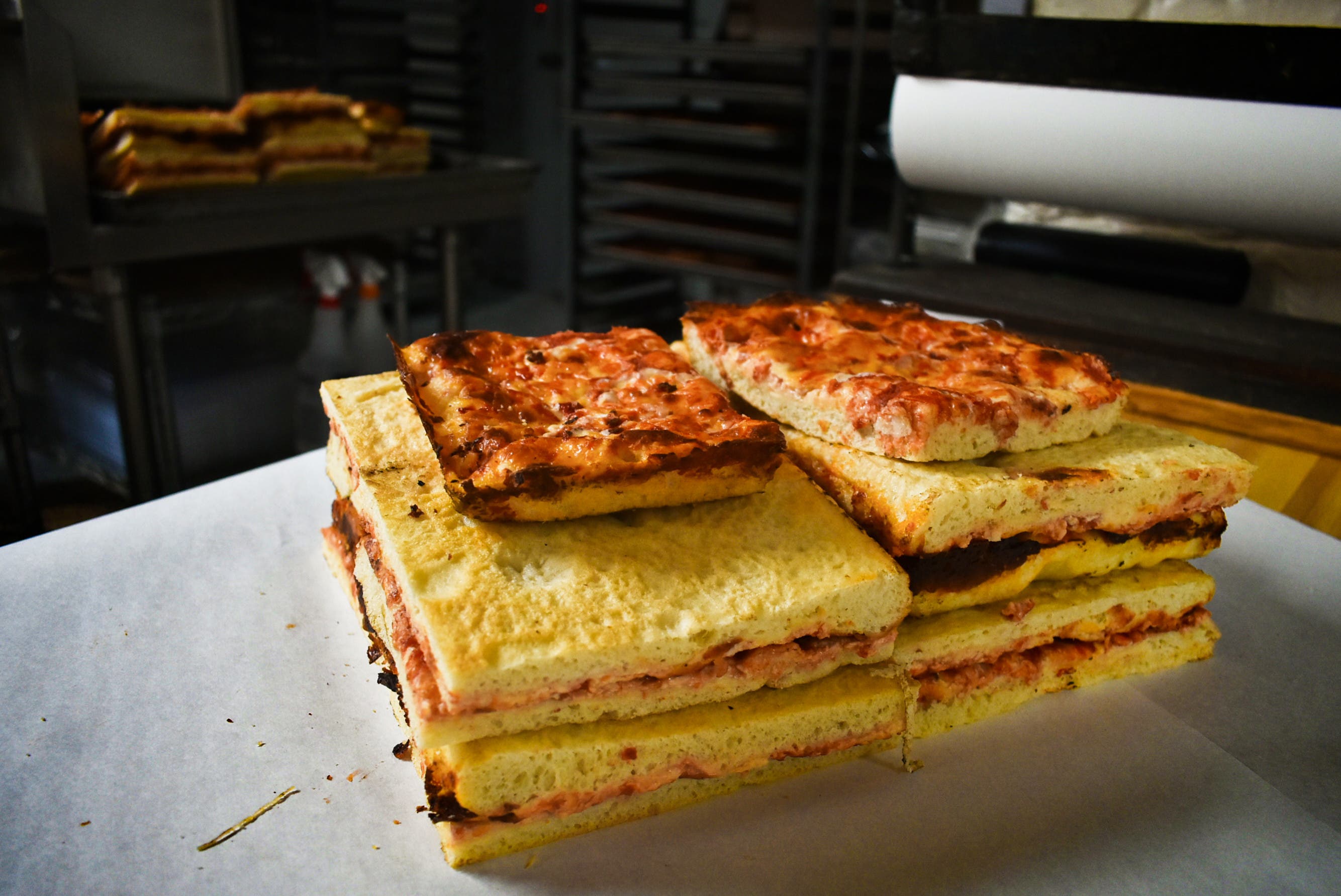 Decades ago, Framingham Baking Co. primarily sold bread. Ever resourceful, the bakers would take leftover bread dough, smear on some sauce, and add cheese to create a Sicilian-style square pizza that could be sold at room temperature right on the counter.