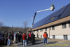 Sunday morning, St. Andrew Episcopal Church in Framingham celebrated the church's new new solar panels with Bishop Bud Cederholm blessing the panels via a cherry picker.