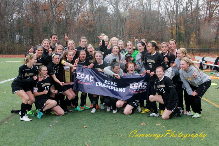 Framingham State University women’s soccer team won the 2014 Eastern Conference Athletic Conference (ECAC) New England Div. III Women’s Soccer Championship in penalty kicks over The University of New England on Sunday afternoon in Framingham.