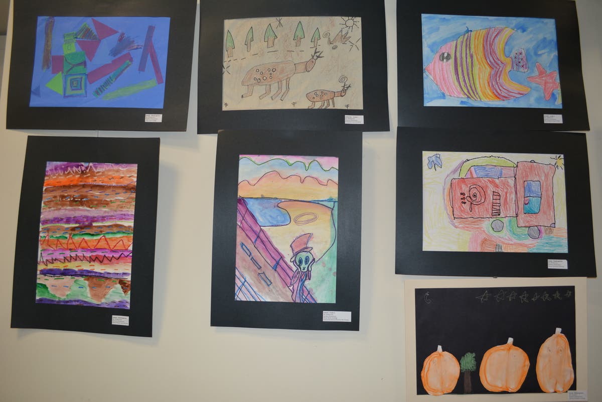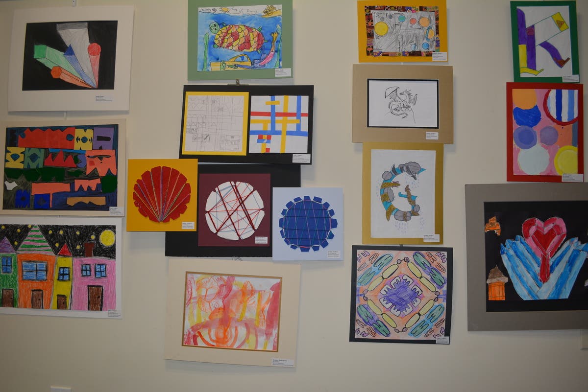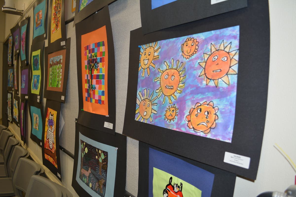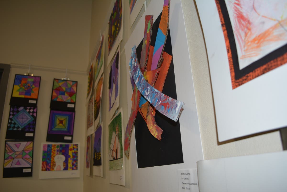 The Costin Room of the library is covered, from wall to wall with artwork. Students as young as kindergarten and as old as high schoolers have art hanging in the temporary gallery. The show started on March 6 and will close on March 31.