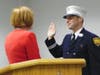 Fire Chief Gary Daugherty read of Dutcher's history and accomplishments with the (See video)Then, Town Clerk Valerie Mulvey swore him in, followed by Dutcher's wife Stephanie pinning him.