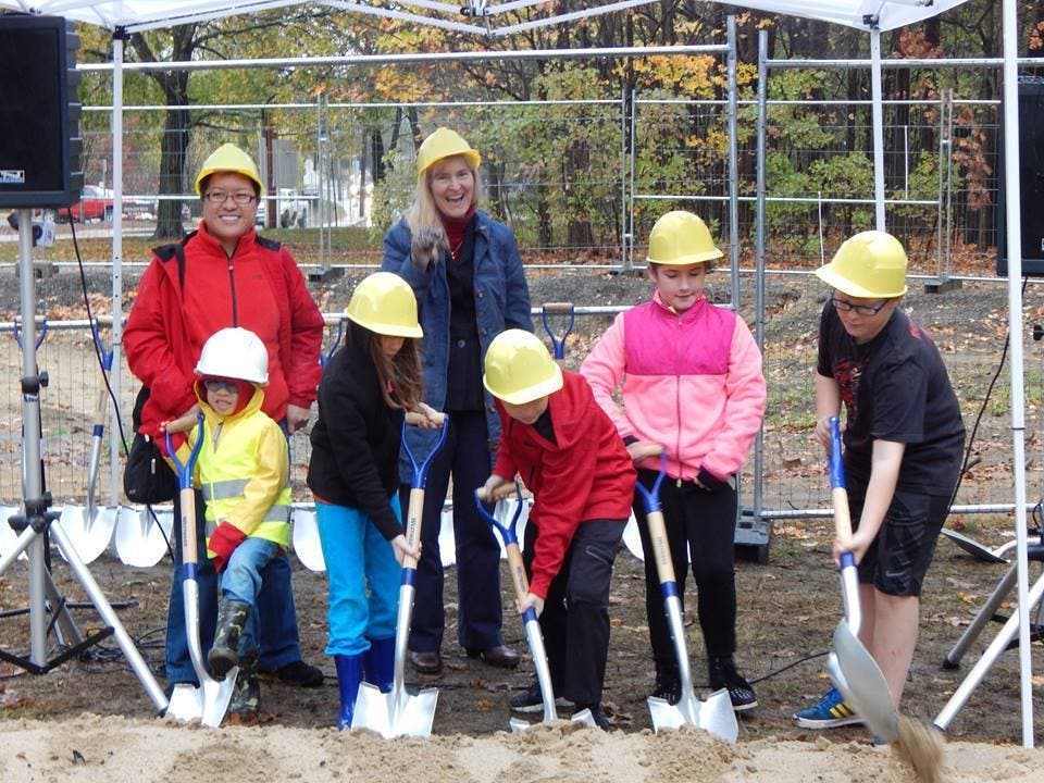 There was a photo of elected Framingham Library Trustees wearing hard hats and carrying shovels, one of town and state leaders, one of honored guests and Framingham Library staff and finally one of Framingham’s youth who donated lemonade stand and bar mitzvah money to help the Framingam Library Foundation raise its goal of $600,000 towards the project.