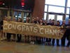 The cheerleaders were welcomed back to Grafton High school with fans and parents honking, screaming and holding signs up along the route.