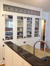 cabinetry crowned with a gorgeous custom leaded stained glass piece. The