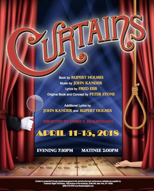 From Dean College: The School of the Arts at Dean College will perform Curtains, beginning Wednesday, April 11 through Sunday, April 15, 2018.