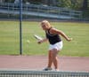 First singles Charlotte Horton droped a 6-3, 6-2 decision to Sydney Arsenault, in a match that was closer than the score indicated.