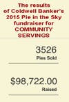 Statewide, Coldwell Banker sold 3,526 pies and raised $98,722.00.