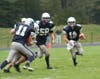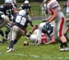 Then in the fourth quarter Amesbury quarterback Matt Talbot (9 carries, 129 yards) began to find open holes. He had carries for 47 and 20 yards as his team moved from its own 6 yard line (thanks to a fumbled snap by Lyons recovered by Curran O’Connor) to the Generals 26. But when he dropped back to pass on a 4th-and-6 play he was picked off by Kevin Anthony, essentially preserving the win with 4:17 showing on the clock.