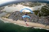 “I’ll free-fall for 10 seconds or so at 120 miles an hour, open my chute, slow to 70 miles an hour, and at 35 miles per hour make a hook turn and leap the Grand Prix’s broadest jump in front of the VIP tent,” says Carpenter.