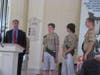“The common stereotype is boys helping grandmothers cross the street,” he began. But, he explained, earning advances in lower ranks does not involve merit badges.