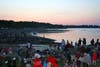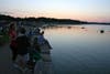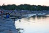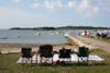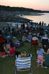 Thousands of people, many with their children and other family members, flocked to see the annual July 4th celebration with individuals setting up their optimum viewing spots from five o’clock onwards. The steady stream of residents carrying folding chairs, coolers and picnic blankets meant that space on the grass at the Bathing Beach was at a premium and many viewers sat on the harbor wall or took up a position on the water itself.
