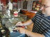 Alexiades mixed ice cream flavors, topped off sundaes with vanilla and cherries and even whipped up frappes.