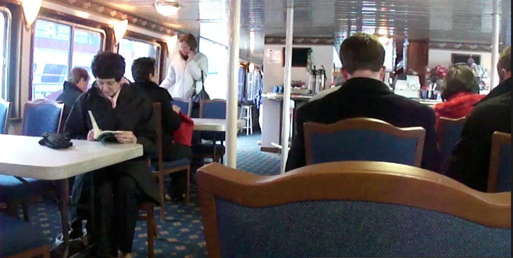 The ferry service begins at 6 a.m. and ends at 9:05 p.m.