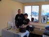 The event began at 9 a.m. as yoga beginnners and enthusiasts streamed in the doors. Guests were greeted and toured the studio. Lesley's proud husband, Steve, welcomed guests and passed out energy drinks in a room near the enterance.