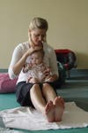 During the BABY IBY class, the baby is mostly lying on her tummy, back or in a parent's arms. For parents, this class gives the special time necessary to bond with and learn about your baby's emerging personality. No yoga experience required.
