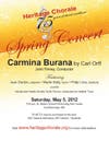 The Heritage Chorale’s 75th Anniversary Season concludes with a performance of Carl Orff’s ever-popular Carmina Burana. Particularly appropriate for this anniversary season of the Heritage Chorale, Carmina Burana was premiered 75 years ago (on June 8, 1937), in the same year that the chorus was founded.