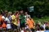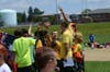 Teams wore their national colors, had their faces painted, waved giant flags and many had Hopkinton green hair.