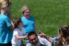 Children learn shooting, passing, juggling, dribbling from varsity captains and returning players.