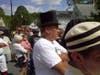 The ceremony for the new statue was preceded by a parade, led by a local fire truck and a van carrying the new statue. In the parade, members of the Mudville Base Ball Club, the Melrose Pondfeilders and the Saginaw (MI) Old Golds marched to Blair’s home.