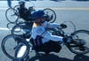 There are a few in-line skaters and bicyclists who took advantage of the closed roads to head toward Boston on a beautiful spring morning.