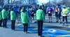 In photos where the flag is visible, it blows straight toward the city. The tail-wind helped Geoffrey Mutai set a world-record time of 2:03:02 in the race.