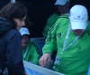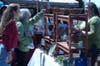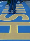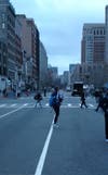 Saturday, the Finish Line thronged with tourists, police & workers getting ready for the Boston Marathon