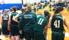 Sousa has terrific first half. Doucette knocked out of game. Hillers cold from the floor.