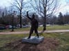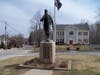 A portion of the inscription on the statue reads, " Honoring George V. Brown who stands ready to start the Boston Marathon as he did from 1905-1937. Thousands of runners gather here each year at the race start visible just a few feet away, to run the 26.2 miles to Boston. Brown is Hopkinton's "First Citizen of Sport", born here in 1880. He was instrumental in bringing the Boston Marathon start to Hopkinton as Boston Athletic Association govener, coach and Athletic Director."