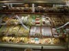Most varieties of breads and rolls displayed near the bakery are proofed and baked at the shop.