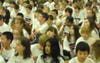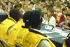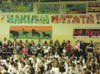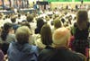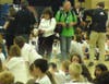 Gym filled to capacity with students, residents and media to welcome citizens of world's most successful marathoning country.