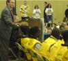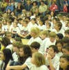 The Elmwood School assembly included town dignitaries, parents, and members of the Hopkinton High School Hillers Track team.