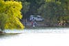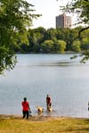Life went on as usual around most of the Pond as people fished, skipped stones and let their dogs swim. People walking or running the circuit around the Pond, however, had to either turn around or make a wider loop around the police zone.