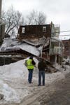 According to scanner traffic, the Fire Department is monitoring a nearby building at Germania and Brookside that looks like it may also come down.