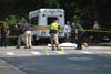 UPDATE, Monday, 9:30 p.m.: No name has been released for the victim. Police say the van struck the motorcyclist. Here is an updated story.