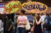 "There are some scattered showers, but we are undeterred," says an upbeat message on the machine at Spontaneous Celebrations.