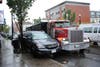 A tractor-trailer and Honda Accord collided on Washington Street, with both vehicles plowing into a parked SUV. No one appeared to be seriously injured, but the wreck snarled traffic on Wednesday afternoon.