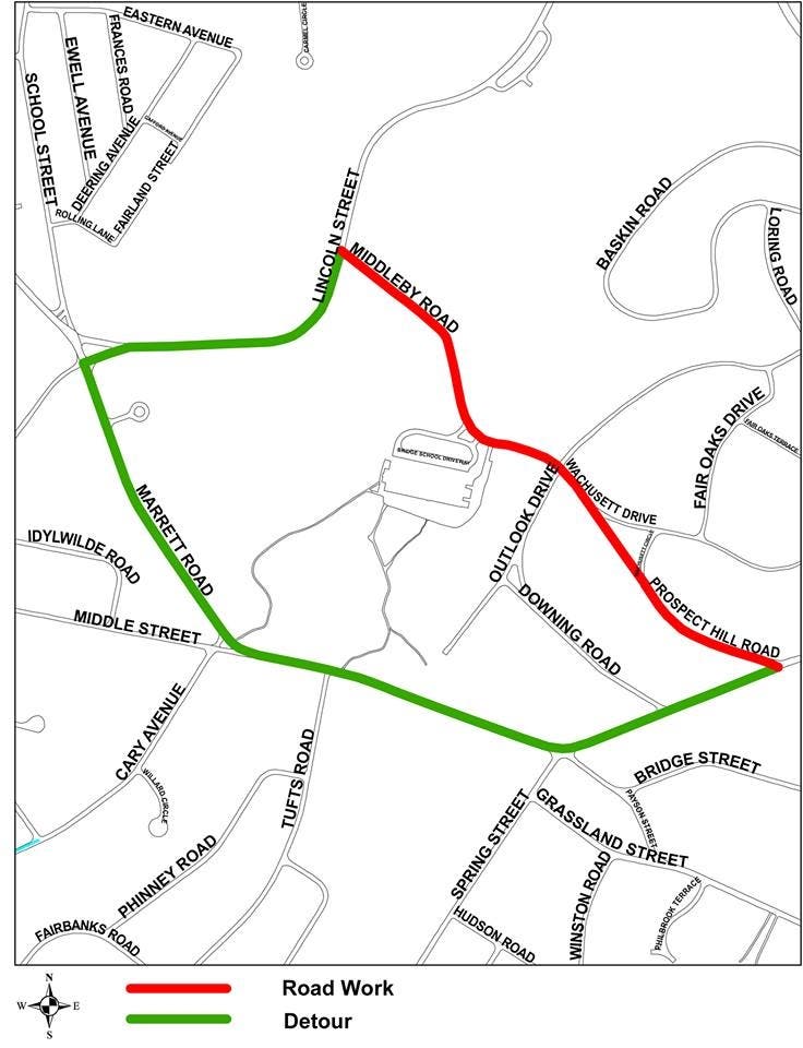 LEXINGTON, MA — Middleby Road and Prospect Hill Road will be closed today as crews apply leveling course, police said. The roads will be closed to through traffic. Crews will be working until 4 p.m.