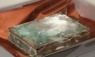 Officials at the Museum of Fine Arts, Boston opened the capsule Tuesday and discovered five newspapers, a title page, 24 coins, a silver plaque, and a paper impression of the Seal of the Commonwealth.